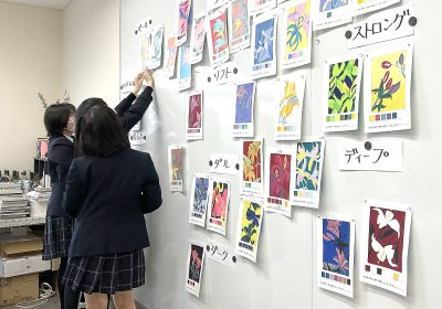2年生では“ パッケージデザイン”や“ポスター制作”などに挑戦します。「誰に」「何を」伝えるかを具体的にイメージした作品づくりを行います。