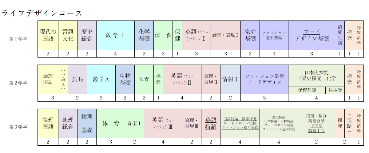 進路の希望によって3年生では大学の受験科目または、家庭科専門科目を選択することが可能です。