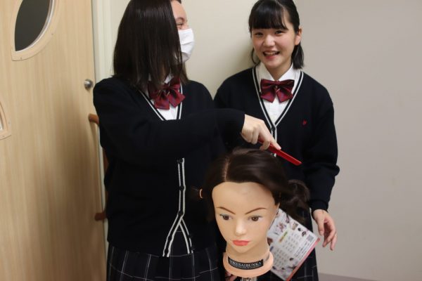 ↑は美容専門学校の体験授業の様子です。マネキンにカーラーをまいたり、とかしたり