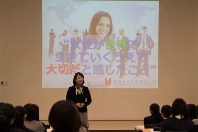 各科目の教員が授業の取り組みについてご説明しました。また、今回はアメリカ人のカート先生から、英理iグローバル部の英語の授業で大切にしていること、などについてのお話もさせて頂きました。