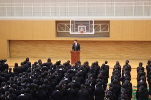 最新情報キャリア部 2020.02.20 本日は全校朝礼を行いました 本日は全校朝礼を行いました。 3年生が卒業式を控え、自由登校日となっていたので 1.2年生の全校朝礼となりました。 今日は、来年度の文化祭実行委員会の発表がありました。 実行委員からあいさつがあり、テーマの発表とポスターやパンフレット表紙の募集のお願いがありました。 9月の文化祭が今から楽しみですね!