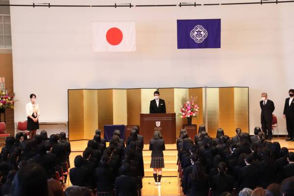 今年度は新型コロナウイルス感染症対策のため、マスク着用の徹底、来賓と在校生の参加の取りやめ、校歌や国歌は心の中での斉唱と対策をとり、