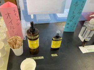 科学部では「ハンドクリーム」をすぐに作れますよ!(あっという間にオイルが乳化してクリームになったことには、驚きでした。私は学校での仕事をする前に、化粧品会社でスキンケア商品の開発をしていたのですが、クリームがこのようにできていることを”実体験”したことがありませんでした・・・!)