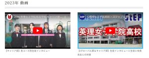 そのほかに学習塾STEP様よりご制作頂いた動画もご紹介しています。こちらの動画では、元STEP生だった本校の両部門の生徒が現在での学びをお話しています。そのほかには校長先生との対談インタビューもありますので、ぜひ最後までご覧ください。