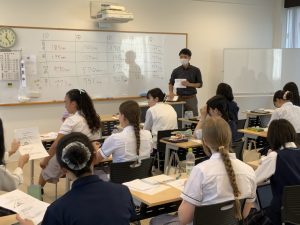 下記は本校で行われた交流の様子です。英語と日本語の2か国語で交流ができて、生徒たちはとても楽しそうでした。