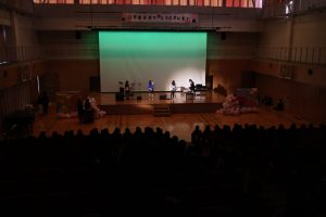 本日は卒業式を目前として、お世話になった先生たちにお礼を述べる謝恩会と、後輩の生徒や先生たちから卒業する生徒にむけての三年生を送る会(送別会)を午前と午後にわけて実施しました。謝恩会では3年生がそれぞれのクラスで動画を作成し、担任の先生に感謝の気持ちを述べました。そして、三送会では、各部活動の在校生たちが3年の先輩たちに向けてのメッセージ動画や、公演を行いました。最後には3年生の先生によるサプライズ公演もあり、場内は盛り上がりました。