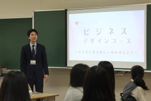 ビジネスデザインコースでは、「マーケティング」をテーマにした体験授業を実施しました。「ガリガリ君の新しい景品を考えよう!」というテーマで、中学生の皆さんが在校生と一緒にアイデアを出し合い、楽しくマーケティングを体験しました。始まりから、ビジネスの先生から実際の「ガリガリ君」が手渡され、参加者の皆さんは笑顔に!(※実際の授業ではアイスを食べながらは行いません、という先生のユーモアある注意もありました。)