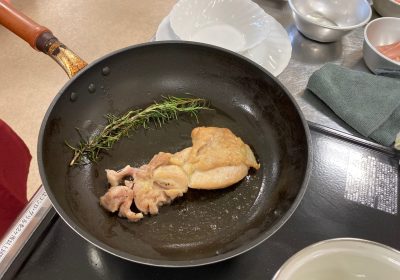 おいしそう!!!チキンのソテーがこんがり焼きあがるところでした。まさに食欲の秋ですね!(別に私の場合は、秋だけでなくてもお腹すいてますが)