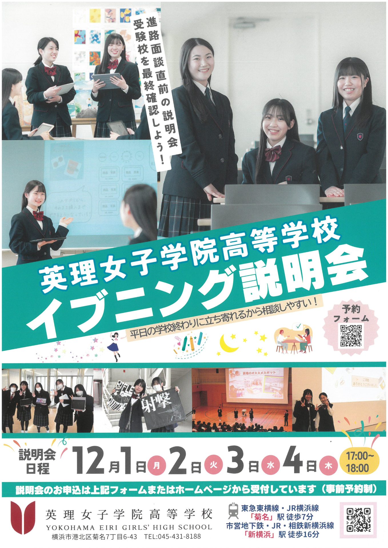最後の高校の確認に、ぜひお越しください。申込は下記からお願い致します。(学校説明会のご案内の下にイブニング説明会が表示されています)