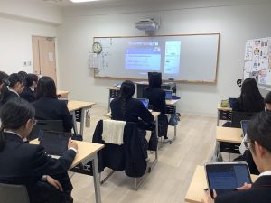 1年iグローバルコースでは、STEAM活動の一環として、自分たちで栽培したものを使ったクッキーを販売するプロジェクトを進めています。今回はご協力くださる鎌倉の洋菓子店「AaH bit(アービット)」代表取締役社長の高垣様とオンラインミーティングを行いました。生徒たちは「どのような人に、いつ、どんなクッキーを届けたいか」について班ごとにプレゼンテーションを行い、高垣様からは、実現に向けた視点や温かいアドバイスをいただきました。