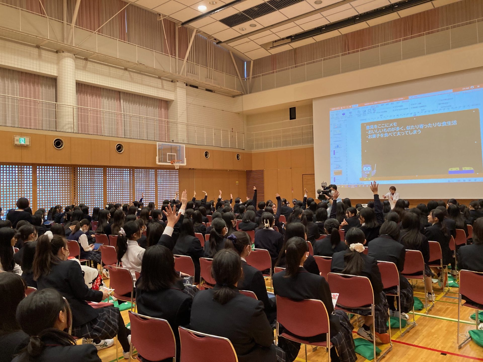 食品ロスや若者の栄養問題などについて、FANCLの社員の方からお話をうかがったのですが、その中で社員の方からの質問に生徒が回答すると・・・