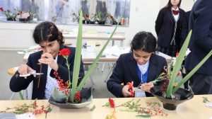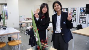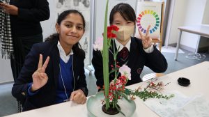 午後は日本文化に触れる「書道&華道体験」を実施。 多くの在校生や先生たちがサポートするなか、一つひとつ丁寧に、思い思いの作品を作り上げました。その出来栄えには、インドの引率の先生からも「どちらも本当に素晴らしい!」と絶賛の声をいただきました。