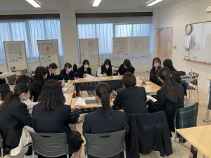 iグローバル部の2年生は、受験を終えた3年生を招いて進学座談会を開催しました。3年生の0学期とも呼ばれるこの時期、受験に対する不安を解消するために、また、モチベーションアップのために、文系・理系に分かれ、少人数で先輩に質問を行いました。