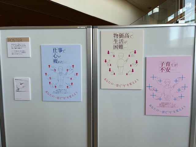 また、来週末の総選挙を前に、10代の若い有権者の率直な声なのではないかと感じられるようなポスターもありました。