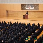本日全校朝礼と表彰式を行いました。また生徒会からも2月に行うイベントについての告知がありました。