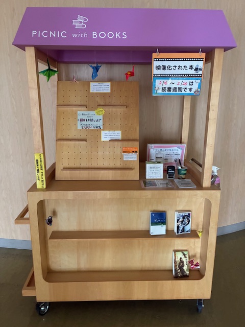 かなり静かに本に集中している様子でした。そしてふとその廊下に置いてある図書ワゴンに視線を向けると・・・