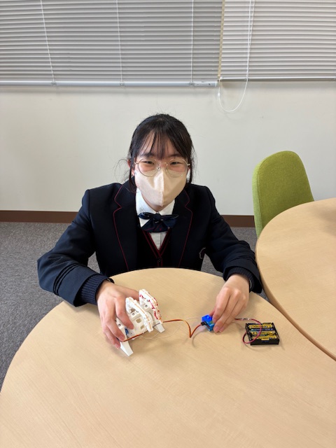 iグローバル部2年生の生徒が冬に電気通信大学の講座に参加して、「指ロボット」を作ることに挑戦したそうです。