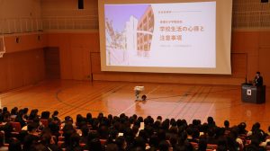 説明会では、校長先生からのお話をはじめ、これからの学校生活や行事、校則などについての説明がありました。新生活への期待に満ちた皆さんの様子を拝見し、私たち教職員も身の引き締まる思いです。