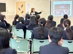 特に、コロナ禍で対面メイクが困難になった際に誕生した「VRを活用した新しいメイクビジネス」の披露には、逆境をアイデアで乗り越えるビジネスデザインの醍醐味を感じ、生徒たちも興味津々で聞き入っていました。