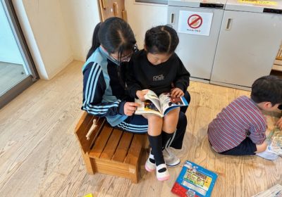 期末試験終了後くらいから、有志の生徒たちが幼稚園で「おねえさん先生」として活躍中です。先ほども幼稚園をのぞいたところ、おねえさんをこどもたちが独占していました!(笑かわいい!)