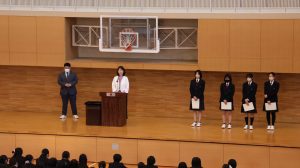 続いて表彰式が行われた後、担任紹介と新しいクラスの発表がありました。生徒たちは新しい教室へと移動し、いよいよ新生活が始まります。 本年度も、生徒一人ひとりが自分らしく輝ける一年となるよう、教職員一同見守ってまいります。