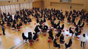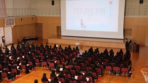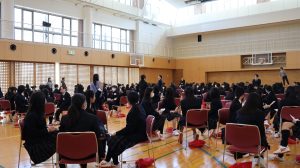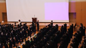 朝一番にはアリーナにて、上級生と初めて顔を合わせる「対面式」が行われました。少し緊張した面持ちの新入生を、先輩たちが温かい拍手で迎え、全校生徒が揃ってのご挨拶を交わしました。
